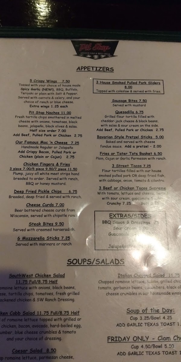 Now, let’s talk about the star of the show: the food. The Pit Stop offers a delightful array of BBQ specialties and comfort classics. If you're a rib lover, you can’t miss the Baby Back Pork Ribs; they are tender and perfectly smoked, complemented by an exquisite house-made BBQ sauce and served with your choice of signature sides and Texas toast. For those who can’t decide, the Smoked BBQ Plate allows you to pick two meats ranging from Andouille sausage to house-smoked pulled pork, all drizzled with spicy or regular BBQ sauce for a flavor explosion.